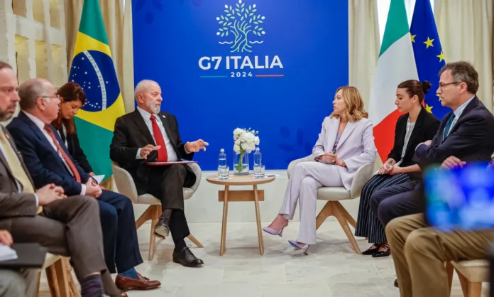 Lula parabenizou Meloni pela organização do G7, que reuniu os chefes de Estado e de Governo de Alemanha, Canadá, Estados Unidos, França, Itália, Japão e Reino Unido, entre outros países convidados para o fórum.