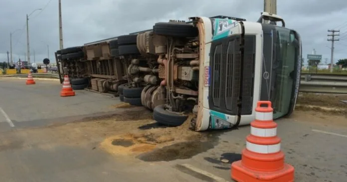 Uma carreta tombou no acesso ao Assaí Atacadista em Vitória da Conquista, gerando transtornos na tarde de sábado (15). Até a manhã do domingo (16), o veículo continuava no local.