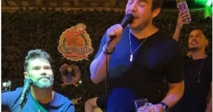 “O que vocês fazem no dia de folga de vocês? Por aqui a gente canta. Decidimos dar uma palinha aqui em Feira de Santana/BA no show do parceiro Cris Azevedo!”, escreveram em publicação nas redes sociais. O episódio aconteceu na noite de sábado (22).