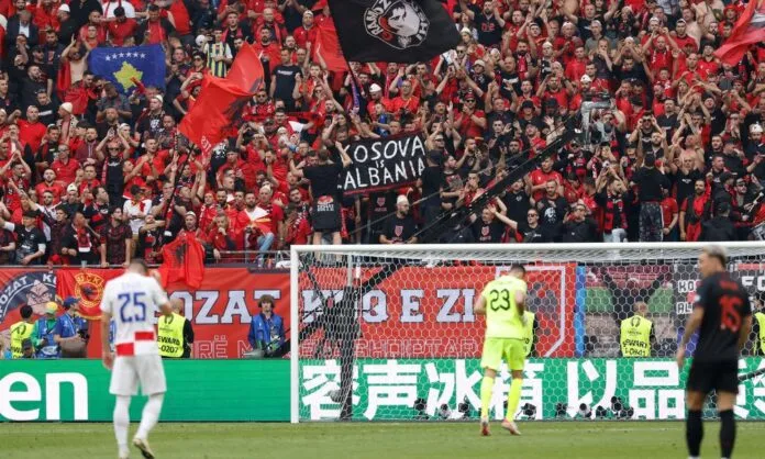 A UEFA impôs multas às federações de futebol da Albânia e da Sérvia devido ao comportamento de seus torcedores durante jogos da Eurocopa. As punições totalizaram 10 mil euros (mais de R$ 50 mil) para cada país, por exibirem faixas nacionalistas consideradas provocativas e inadequadas para eventos esportivos. Os torcedores albaneses mostraram uma faixa com um mapa que ampliava as fronteiras de seu país até territórios de nações vizinhas, durante a partida contra a Itália. Enquanto os torcedores sérvios exibiram uma bandeira que incluía Kosovo, território independente, e o slogan “Não à rendição”, no confronto contra a Inglaterra. Além das multas, a UEFA abriu uma investigação sobre alegada discriminação por parte dos fãs sérvios. A federação de futebol do Kosovo formalizou uma queixa à entidade europeia. A Albânia também foi multada em 27.375 euros (mais de R$ 160 mil) por outros incidentes, como o uso de fogos de artifício e invasão de campo. As sanções foram anunciadas após a Albânia empatar com a Croácia, no Grupo B da Eurocopa. Já a Sérvia terá que pagar uma quantia adicional de 4.500 euros (mais de R$ 26 mil) devido ao comportamento de seus torcedores, que arremessaram copos de cerveja durante os jogos. A FIFA já havia lidado com situação semelhante durante a Copa do Mundo de 2022.