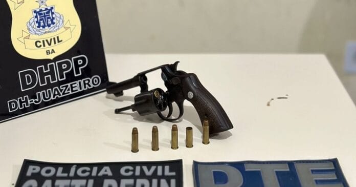 A ação ocorreu durante diligências realizadas pela Polícia Civil na zona rural de Juazeiro. Um revólver calibre 38, quatro munições intactas e duas deflagradas e uma motocicleta foram apreendidos na residência do suspeito, no povoado de Itamotinga.