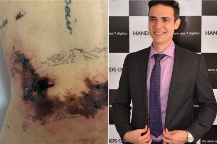Feridas no corpo Após desembolsar R$ 15 mil, a empresária passou pelo procedimento conduzido por Wilian Pires, em Goiânia. No entanto, já nos primeiros dias após a cirurgia, Sayara estranhou as feridas que surgiram pelo corpo, e suspeitou que não eram hematomas comuns de uma lipoaspiração.