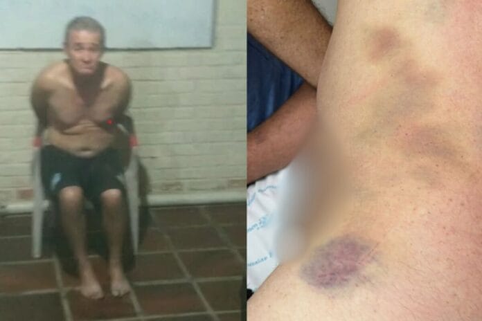 “Cobri no pau” O monitor Matheus amarrou Jarmo em uma cadeira e decidiu gravar a cena. No vídeo, ele aparece, juntamente com outras pessoas, debochando do paciente. Todos usavam roupas de frio enquanto a vítima estava sem camisa, vestindo somente uma bermuda.
