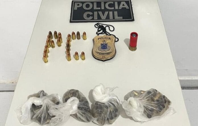 Posteriormente, os policiais se dirigiram à residência do investigado, porém o mesmo não estava presente. A busca e apreensão foram realizadas na presença do filho do investigado e de seu advogado. Na residência, foram apreendidas 23 munições de calibre 9mm, uma munição recarregada de calibre 380 e uma munição de calibre 12.