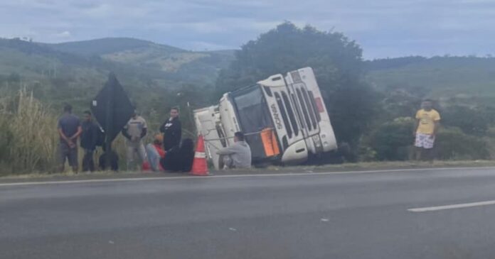 Uma carreta carregada com chocolate tombou na Rodovia Santos Dumont, BR-116, no trecho do município de Jaguaquara, localizado no Vale do Jiquiriçá, no sudoeste da Bahia. O incidente ocorreu na última sexta-feira (19) e o veículo permaneceu no local até este domingo (21).
