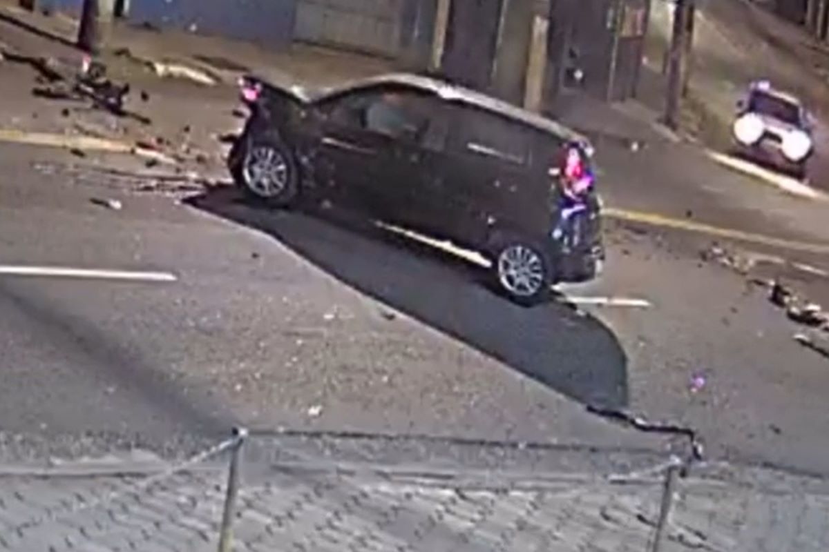 Felipe Gambeta Malheiro, 21 anos, saindo pelo banco do passageiro do veículo envolvido na colisão frontal com o carro do motorista de aplicativo Ednaldo