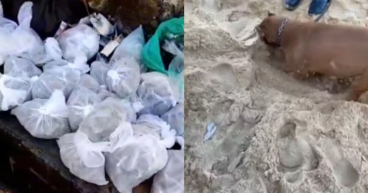 Em um vídeo compartilhado pelo órgão policial, um cão farejador é visto escavando um buraco onde foram localizados sacos plásticos contendo substâncias ilícitas embaladas. Testemunhas relataram ao G1 que os suspeitos tentaram escapar através do mar, mas foram impedidos pelos policiais.