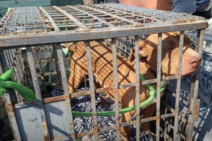 Polícia resgata pit-bull em maus-tratos com tutor que pegou cão na rua