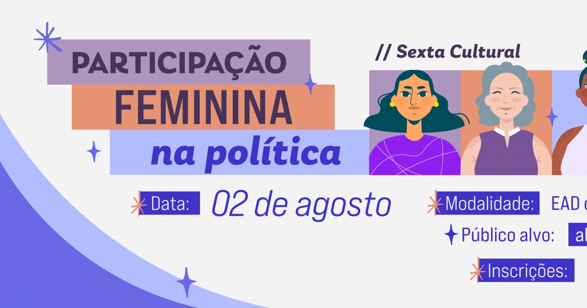 A próxima edição do projeto Sexta Cultural, organizado pela Escola Judiciária Eleitoral da Bahia (EJE-BA), irá discutir a importância da participação das mulheres na política. O evento está marcado para sexta-feira, dia 2.