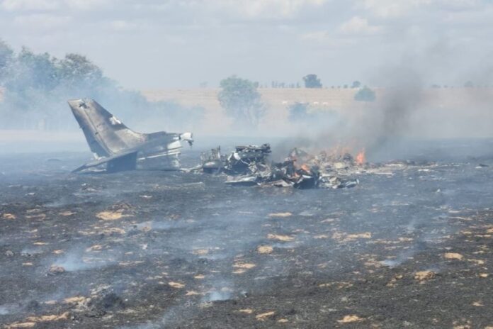 Segundo informações da Polícia Militar, o avião de pequeno porte envolvido no acidente pegou fogo, com as chamas se espalhando rapidamente e atingindo parte do pasto de uma propriedade rural.