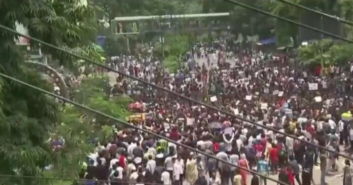Neste mesmo dia, milhares de manifestantes invadiram a residência oficial da primeira-ministra, localizada na capital, Daca. Pela manhã, houve um bloqueio da internet em todo o país, após um fim de semana de protestos em massa e confrontos violentos. Mais tarde, o Aeroporto de Daca foi fechado e ficou sem operações até o final da tarde, no horário local.