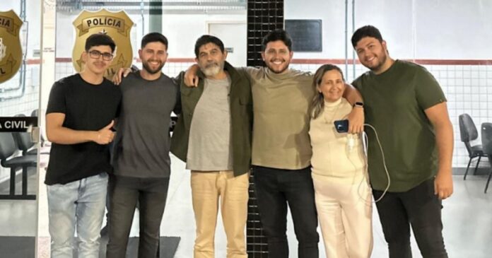 Após ter a liberdade concedida, o pastor e seus familiares celebraram a decisão em frente a uma delegacia.