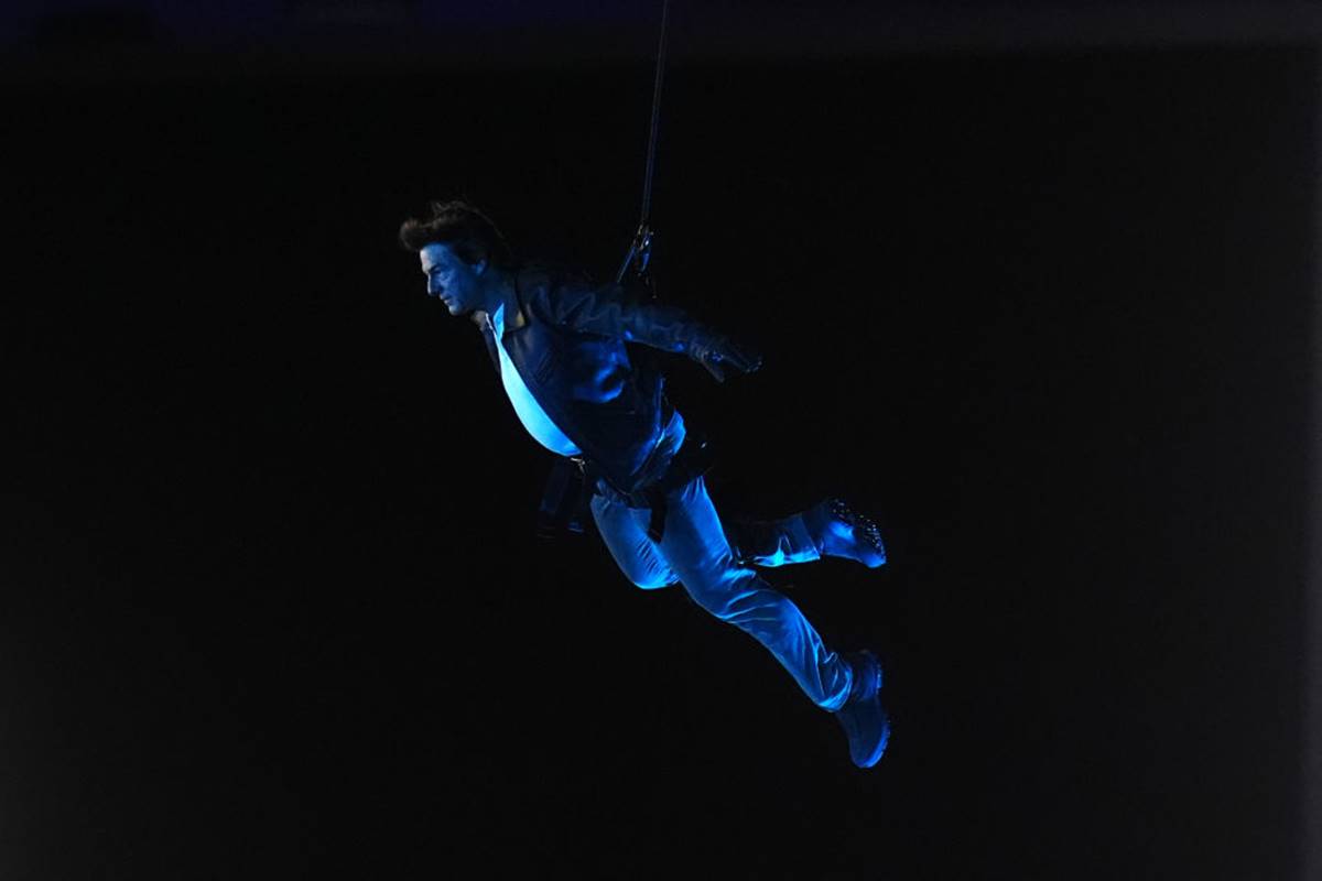 A trilha sonora do momento foi o tema de Missão Impossível, enquanto Cruise saltava preso a um cabo de aço e pousava no meio dos atletas. Em seguida, subiu ao palco onde a cantora H.E.R. se apresentava e recebeu a bandeira olímpica das mãos da prefeita de Los Angeles, Karen Bass.
