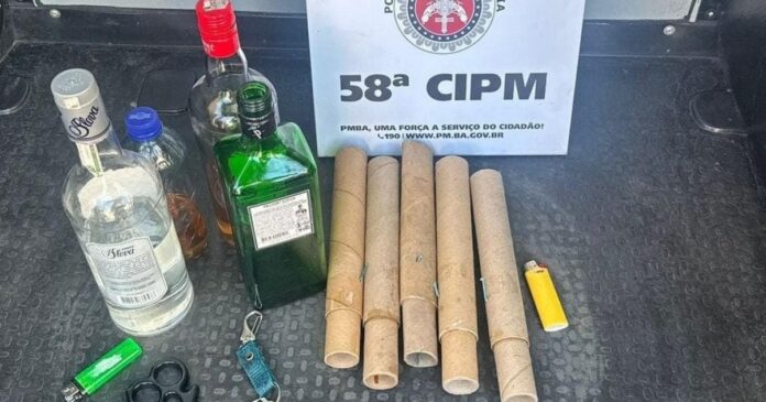 Durante a abordagem, cerca de 80 homens foram revistados, resultando na apreensão de cinco rojões, uma soqueira e diversas garrafas de vidro. A mulher agredida conseguiu identificar três dos agressores no grupo, sendo que com eles foi encontrada a chave de uma motocicleta que foi roubada durante o incidente.