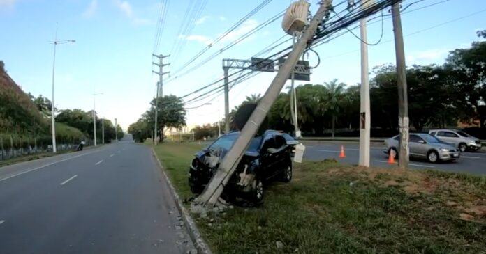 Um incidente foi reportado durante a madrugada desta segunda-feira (12) na Avenida Luís Viana Filho (Paralela), em Salvador. O choque resultou na colisão com um poste de energia, que ficou apoiado em parte do veículo e em outro poste próximo.