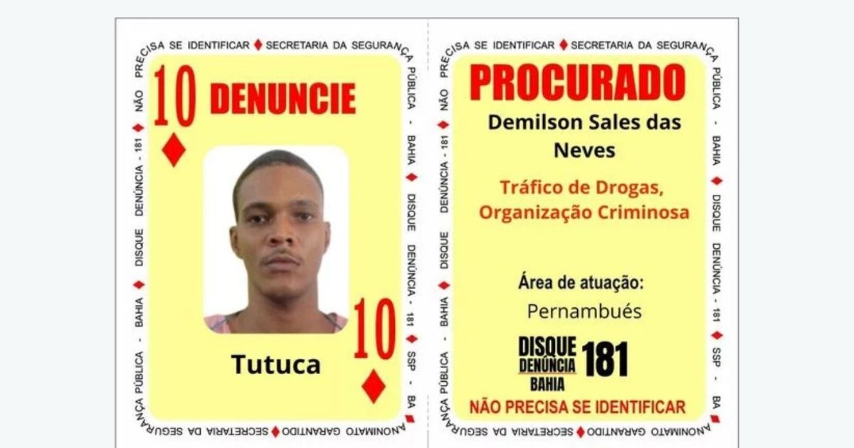 Uma ação coordenada entre as Forças de Segurança Pública da Bahia e do Rio de Janeiro resultou na prisão do líder conhecido como 10 de Ouros do Baralho do Crime, nesta sexta-feira (16). O indivíduo identificado como Demilson Sales das Neves, alcunhado “Tutuca”, foi localizado na comunidade de Santa Tereza, no Rio de Janeiro.