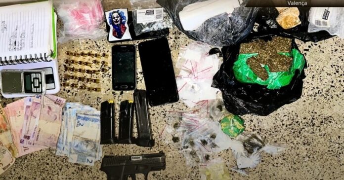 Os itens apreendidos consistiam em 21 papelotes de cocaína, 28 munições calibre 9mm, 3 carregadores de 9mm, 2 balanças de precisão, 1 caderno de anotações, 2 smartphones, 37 pedras de crack, 37 pequenos papelotes de maconha, 4 grandes papelotes de maconha, 300 gramas de maconha prensada, 72 gramas de crack em pedras, 220 gramas de cocaína em pedaços, R$ 261,00 em espécie e 1 macacão camuflado.