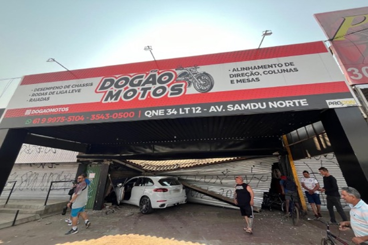 O impacto da colisão provocou o acionamento do airbag do automóvel de luxo. O Corpo de Bombeiros Militar do Distrito Federal (CBMDF) foi acionado para inspecionar a estrutura da loja de manutenção de motos e certificar-se de que não existia perigo de incêndio ou desabamento.