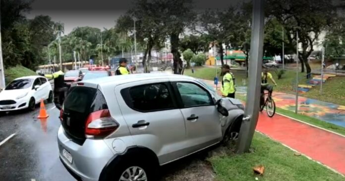O carro estava sob a direção de uma mulher e atingiu um poste de iluminação pública. O incidente ocorreu na curva da Avenida Centenário. Apesar do impacto intenso, não houve feridos. Equipes da Transalvador estão no local e o veículo está sendo guinchado.