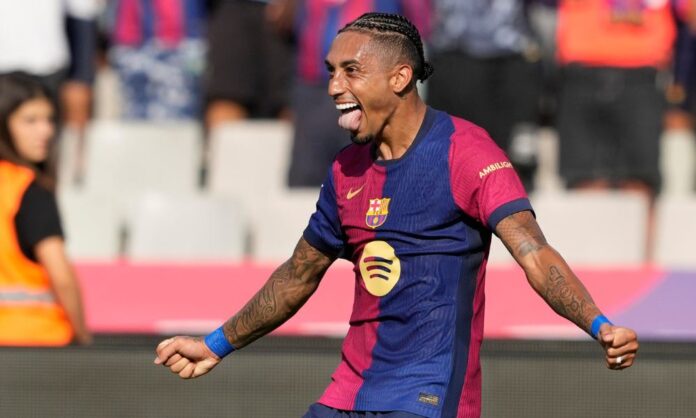 Com hat-trick de Raphinha, Barcelona goleia Valladolid por 7 a 0 na La Liga