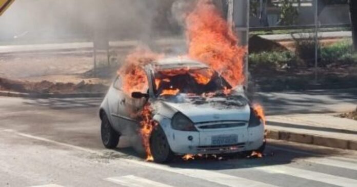 Um Ford KA pegou em Vitória da Conquista na tarde deste sábado (31). O veículo estava em movimento quando o fogo começou.