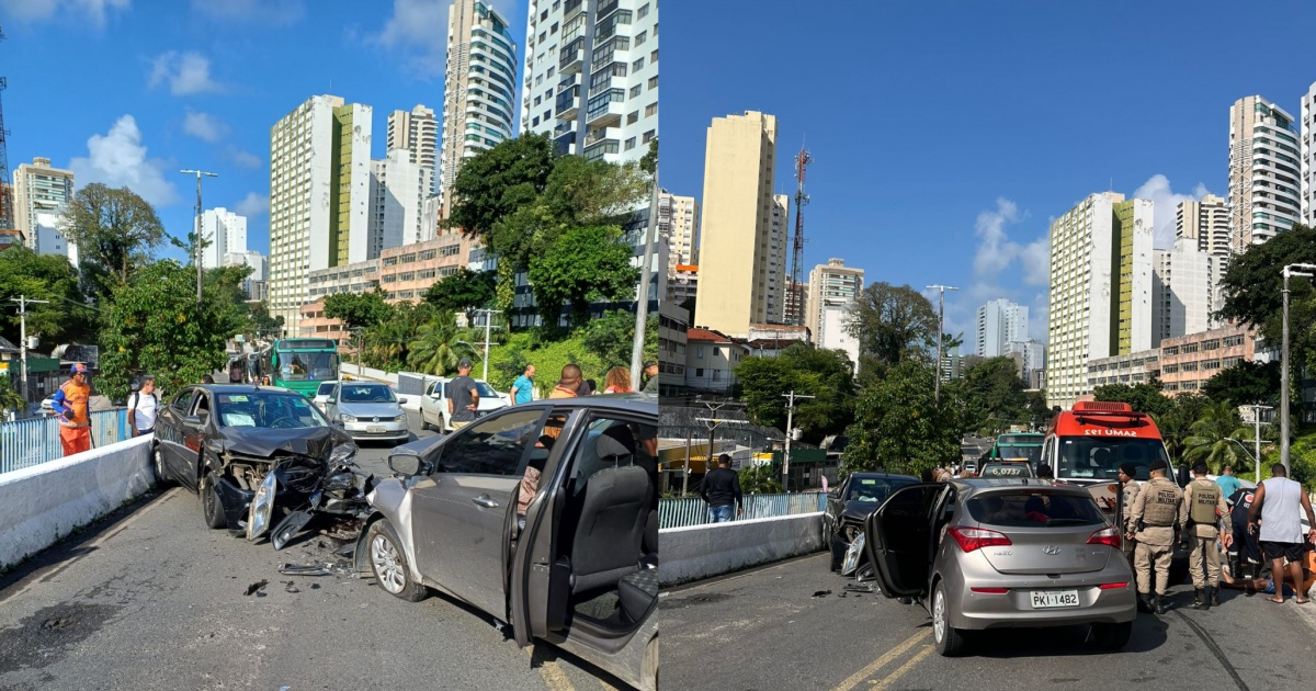 Colisão entre dois veículos interdita viaduto do Vale do Canela