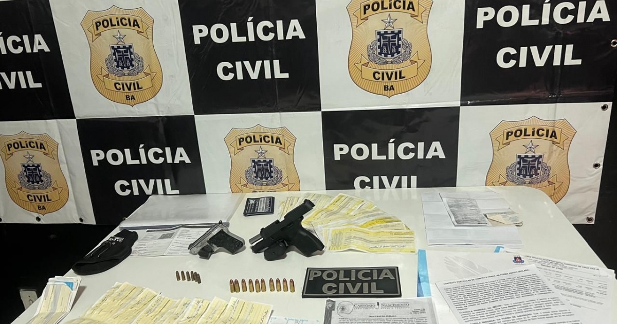 Durante as incursões, além da arma de fogo, foram apreendidas duas pistolas e diversos documentos, como notas promissórias, que indicam a prática de agiotagem. Todo o material será analisado pela Polícia Civil para subsidiar as investigações.