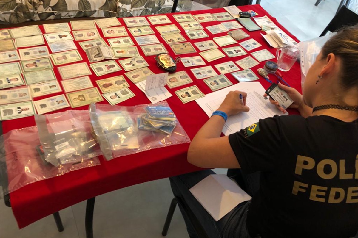 Na ocasião, também foi apreendida uma carteira da OAB-RJ obtida ilegalmente pelos investigados, que usaram documentos falsos para se passar por uma advogada e obter a carteira e o token correspondente.