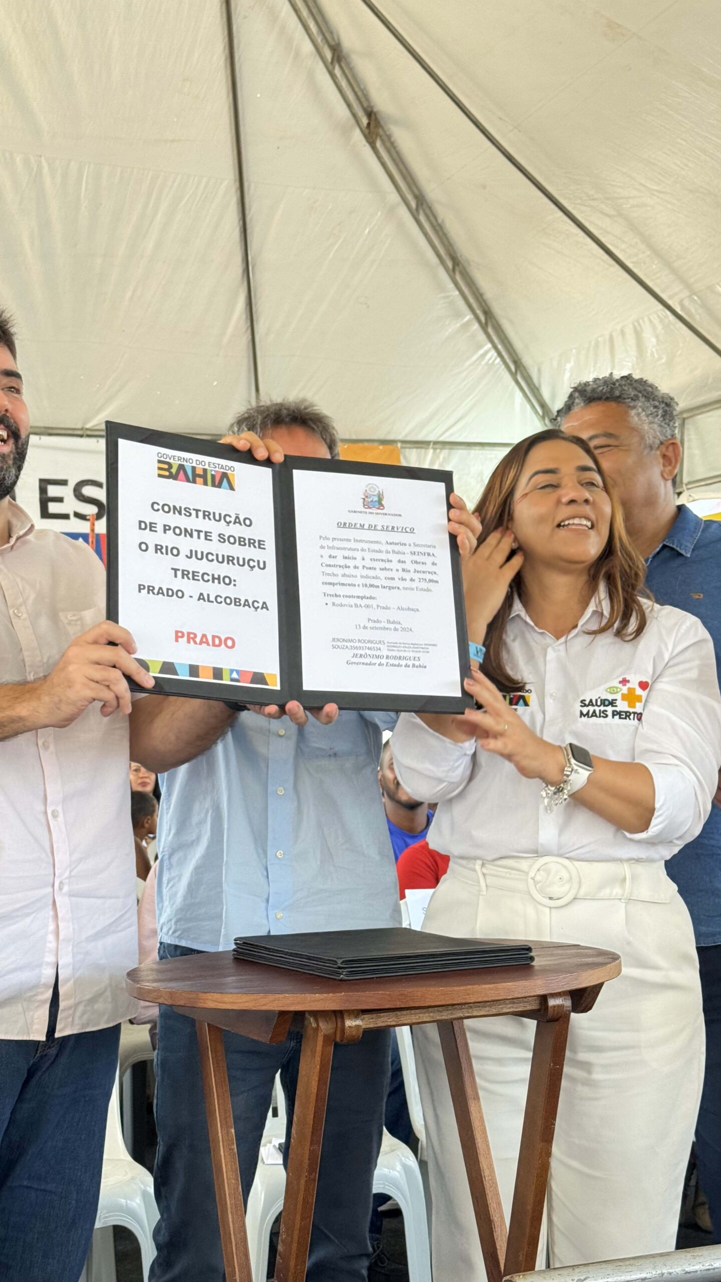 Também foi autorizada a construção da ponte sobre o Rio Jucuruçu, conectando Prado à cidade de Alcobaça pela BA-001, uma demanda histórica, dada as condições da atual ponte, que conta com apenas uma mão de direção por vez. Quando um lado passa, o outro espera. Problema mesmo é no período de alta temporada, quando aumenta o número de pessoas passando pela ponte, com a chegada de turistas.