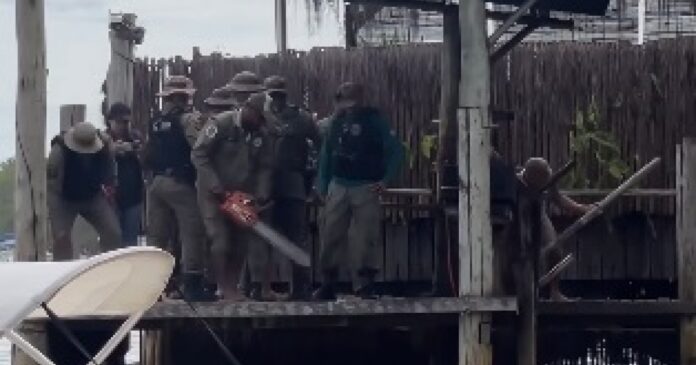 Um deck instalado de forma irregular em Porto Seguro, na Costa do Descobrimento, foi demolido na manhã desta quinta-feira (12). Agentes da Cippa [PM ambiental] e ICMBio executaram a ação após ordem da Justiça Federal.
