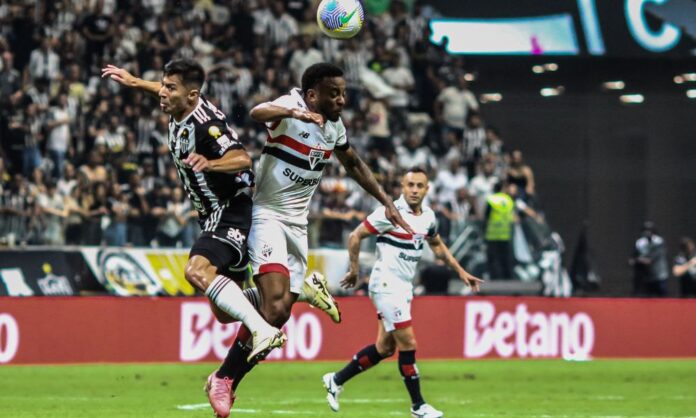 O São Paulo está fora da Copa do Brasil. A equipe empatou por 0 a 0 com o Atlético-MG, nesta quinta-feira (12) Ainda que as duas equipes tenham tido bons momentos, principalmente, no primeiro tempo, o futebol foi condizente com a qualidade do gramado da Arena MRV, casa atleticana em Belo Horizonte. Um trabalho de recuperação de quase um mês não foi suficiente para corrigir irregularidades na grama, que fez a bola quicar excessivamente e dificultou o domínio dos jogadores. Na semifinal, o Atlético-MG encara o Vasco, que eliminou o Athletico-PR na quarta-feira. Saravia recebeu o terceiro amarelo e está suspenso. Também nesta quinta-feira, o Flamengo eliminou o Bahia e avançou à semifinal, em que brigará contra o Corinthians pela vaga na decisão. O São Paulo retorna para a capital paulista ainda na madrugada desta sexta-feira (13). Na noite de sábado, a equipe volta a Belo Horizonte, onde enfrenta o Cruzeiro, no domingo, às 18h30, pela 26ª rodada do Brasileirão. No mesmo dia e horário, o Atlético-MG visita o Bahia.