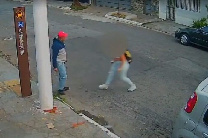 Câmeras de segurança flagraram o momento em que uma adolescente de 16 anos reage a um quarto ataque do homem (veja vídeo abaixo), que tenta a colocar no banco de trás de um carro, na mesma rua, na Vila Prudente.