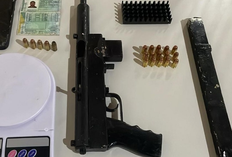 Após uma perseguição, o veículo caiu em uma área de vegetação e os criminosos trocaram tiros com os policiais. Um dos suspeitos foi atingido e morreu no local. Com ele, foram apreendidos uma submetralhadora caseira, munições e uma balança de precisão.