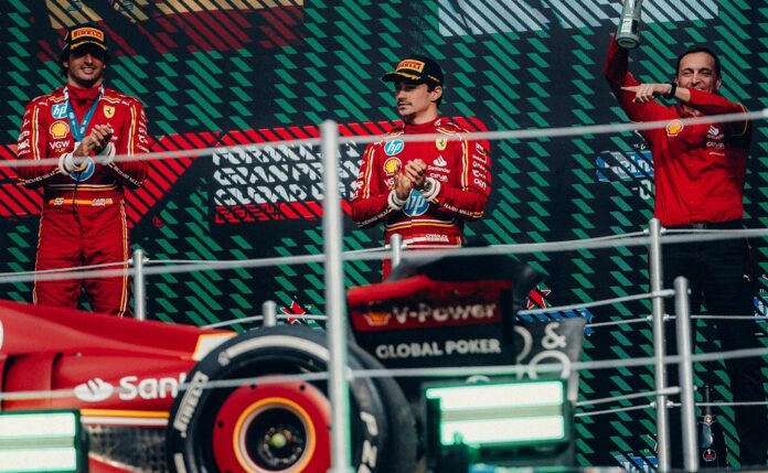 Carlos Sainz confirmou a expectativa sobre o bom ritmo da Ferrari ao vencer o Grande Prêmio da Cidade do México de Fórmula 1 neste domingo. Lando Norris se meteu na dobradinha da escuderia italiana e ficou em segundo com a sua McLaren. Charles Leclerc terminou em terceiro. Com o sexto lugar, Max Verstappen, líder do Mundial, chegou a 362 pontos, contra 315. Agora, 47 pontos separam o holandês do segundo colocado. Leclerc é o terceiro, com 291, seguido por Oscar Piastri, com 251, e Sainz, com 240. No Mundial de Construtores, a McLaren lidera com 566, contra 537 da Ferrari. A Red Bull tem 512, muito pelas atuações abaixo de Sergio Pérez.