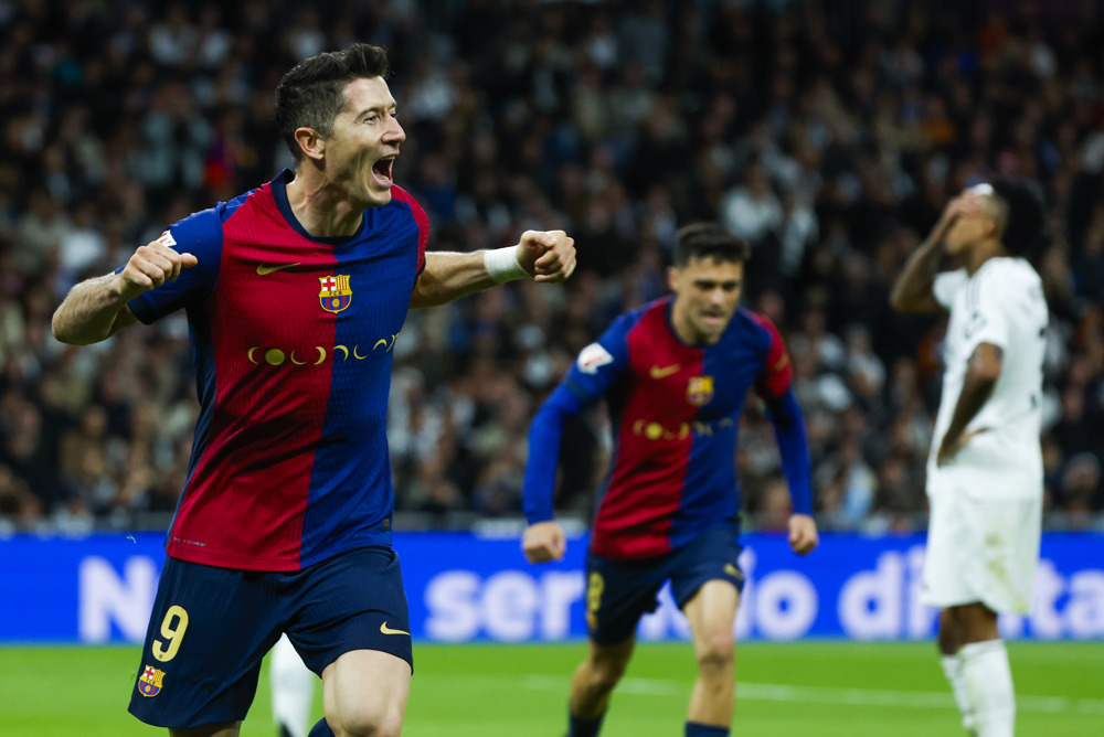 O Barcelona conquistou uma vitória histórica sobre o Real Madrid no primeiro clássico da temporada, neste sábado (26), no Santiago Bernabéu, em partida válida pela 11ª rodada de LaLiga. Com uma atuação dominante, os catalães venceram por 4 a 0, com gols de Robert Lewandowski (duas vezes), Lamine Yamal e Raphinha, todos no segundo tempo. Este resultado aumenta a vantagem do Barça na liderança, agora com 33 pontos, seis a mais que o rival merengue, que permanece com 24 pontos.