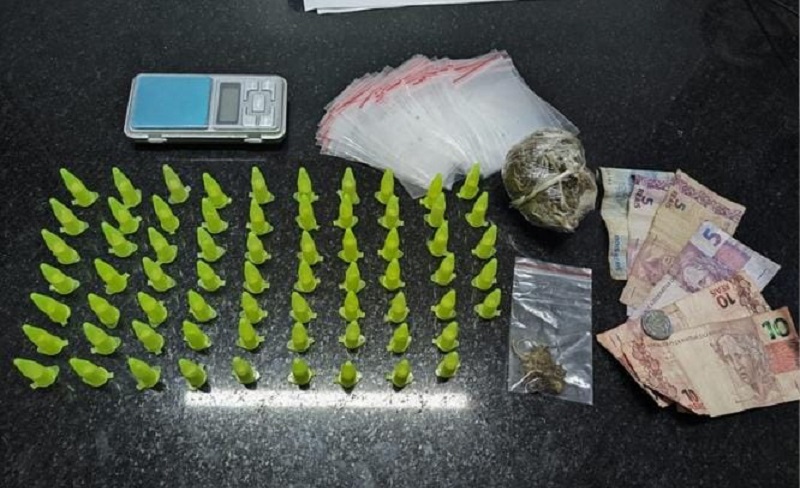 Gustavo segue preso na custódia da Polícia Civil, à disposição da Justiça. Todo o material apreendido foi encaminhado para o Departamento de Polícia Técnica (DPT) para exames periciais. Foram aprendidos: 68 pinos grandes de cocaína; 01 pacote grande, contendo maconha sintética tipo “Skank”, pesando 71 gramas; 01 saquinho contendo maconha comum, pesando 50 gramas; 01 balança de precisão e 48 saquinhos personalizados para acondicionar droga.