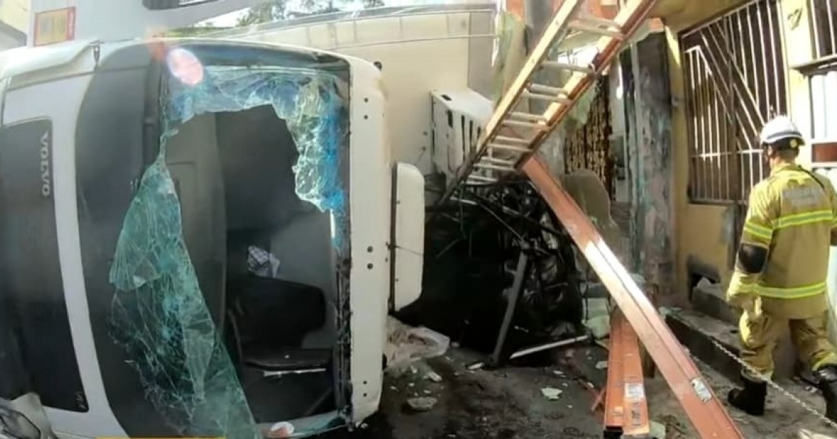 No tombamento, o caminhão destruiu completamente o carro que estava estacionado no local. Os motoristas, de ambos os veículos, tiveram ferimentos e foram conduzidos para unidades hospitalares. Ainda é desconhecido o estado de sáude deles.