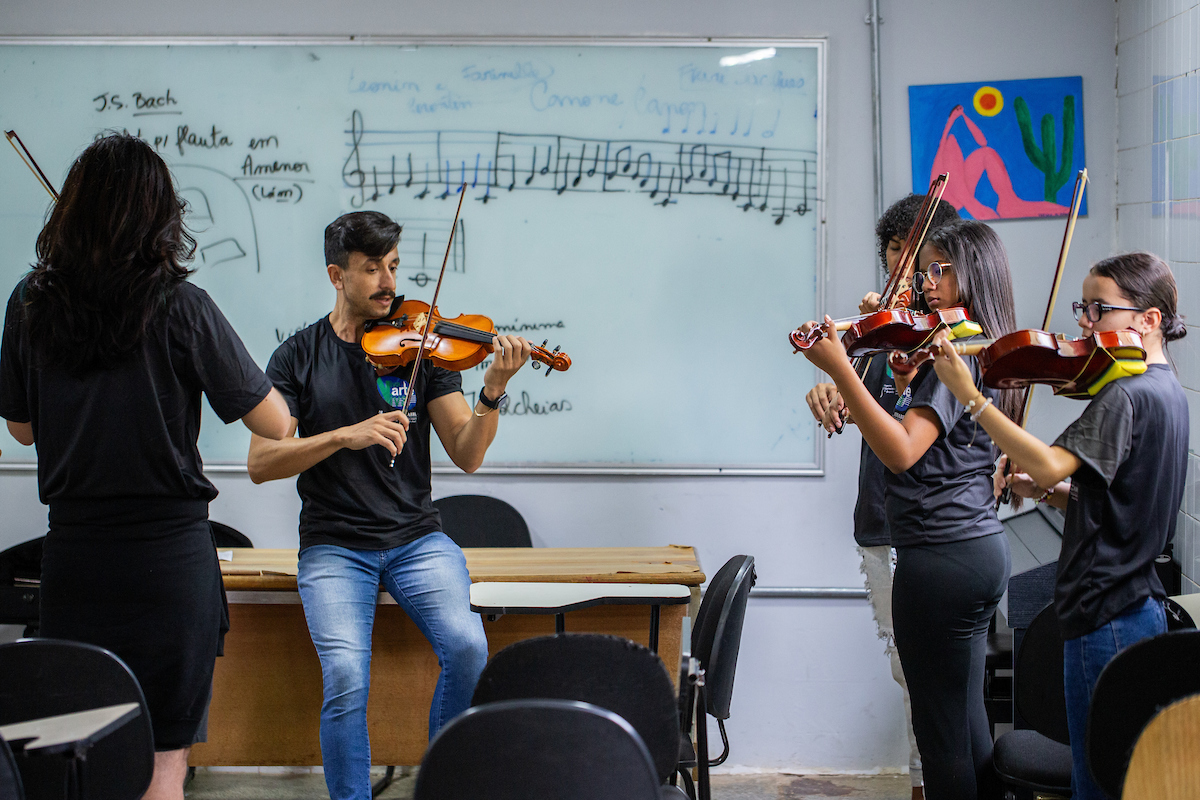 Para o professor e violinista da OFB, Konan Oliveira, ensinar crianças e adolescentes têm sido uma experiência incrível.