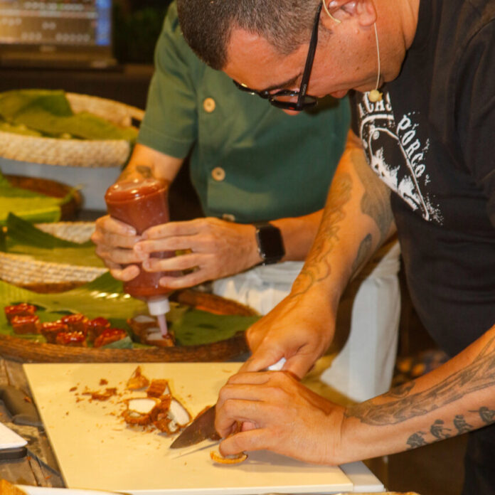 Entre os destaques da noite, o chef Jefferson Rueda, criador e comandante do renomado restaurante A Casa do Porco, apresentou sua famosa receita de Torresmo de Pancetta com Goiabada. Desde a abertura do restaurante, em 2015, no coração de São Paulo, ele rapidamente se tornou um ponto de referência para foodies e gourmets do Brasil e do mundo.