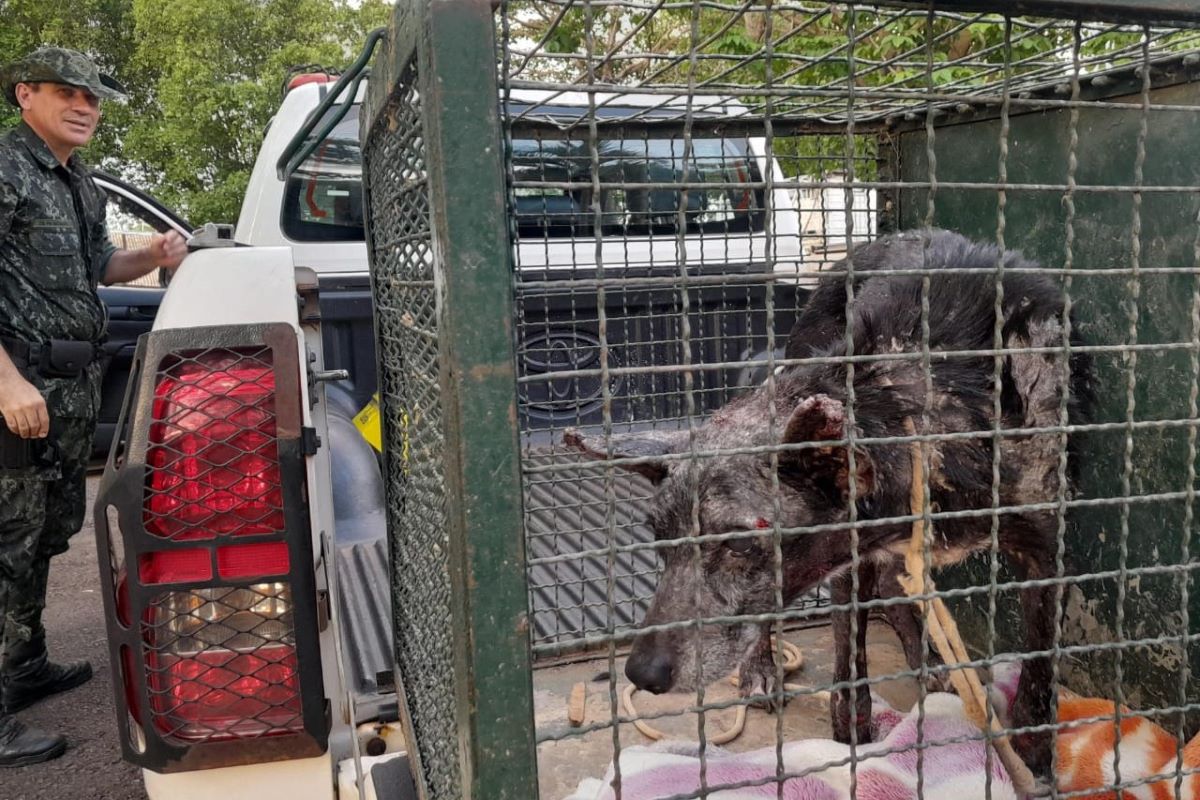 A vistoria da Polícia Militar Ambiental foi feita na terça-feira (5/11) no Jardim Santa Tereza. Ao chegarem ao local, os policiais localizaram um cachorro bastante fraco, magro e com sarna em todo o corpo. Além disso, o cão aparentava estar cego do olho direito.