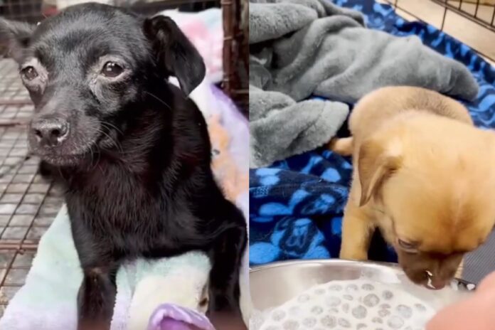 Os irmãozinhos Reeses e Sneakers foram resgatados da rua e estavam há dias desanimados. Tudo mudou quando Vasquez, que trabalha com o resgate de animais de estimação de situações de vulnerabilidade, encontrou uma cadela de pelagem preta.