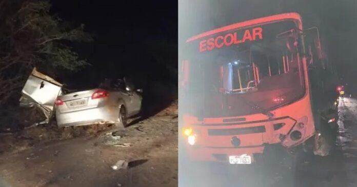 Um acidente vitimou quatro pessoas da mesma família, incluindo uma mulher grávida, em uma colisão entre um carro e um ônibus escolar. O fato ocorreu na noite deste domingo (10) em um trecho da BA-046, entre Morro do Chapéu e Bonito, na Chapada Diamantina.