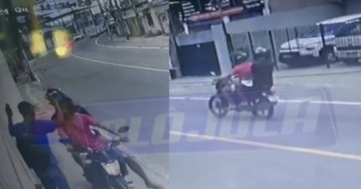 Um homem escapou de uma tentativa de assalto na Avenida Thomaz Gonzaga, em Pernambués, Salvador, na última quarta-feira (4). Câmeras de segurança registraram o momento em que dois criminosos em uma motocicleta tentaram roubar seu celular enquanto ele caminhava pela calçada. O homem conseguiu correr para se proteger, mas os assaltantes voltaram para tentar novamente.