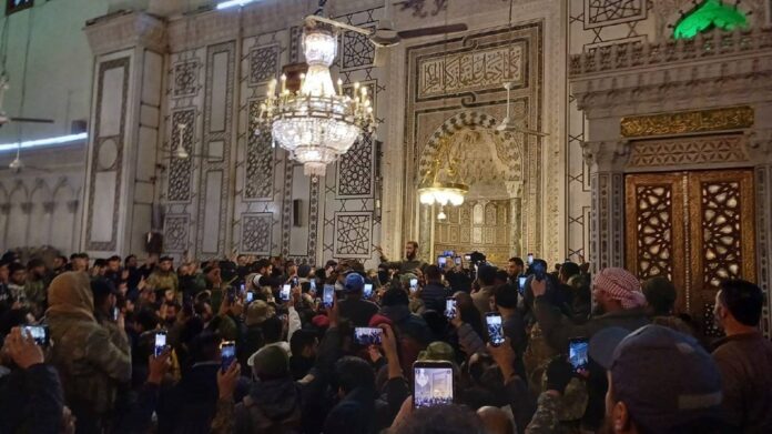 Abu Mohammed Al-Jolani, líder e fundador do Hayat Tahrir Al-Sham (HTS), chegou a Damasco e discursou na capital da Síria após a queda do regime de Bashar al-Assad. Registros mostram Al-Jolani chegando à mesquita de Umayyad ao lado de apoiadores, onde discursou para uma multidão após a vitória da oposição na Síria.
