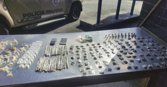 Com os suspeitos, foram encontradas 80 pedras de crack, 30 charutos de maconha prensada, 130 pacotes de maconha, 20 porções de maconha embalada, 34 discos de cocaína e um saco com comprimidos de cocaína.