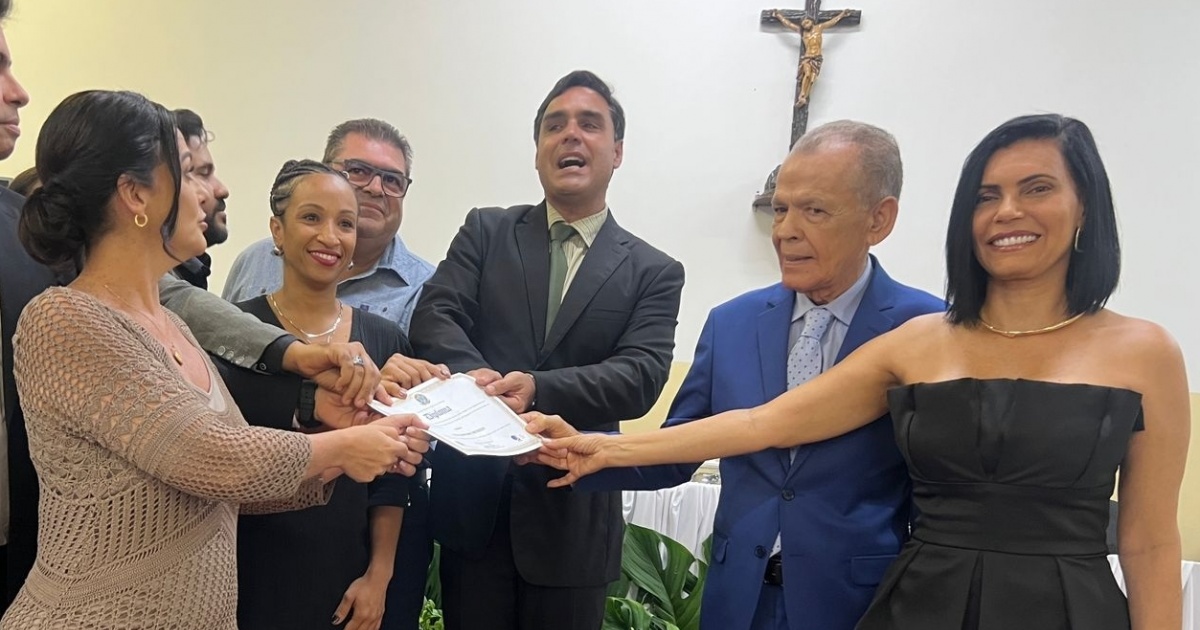 O prefeito eleito de Valença, Marcos Medrado (PV), recebeu sua diplomação nesta sexta-feira (13) no Fórum Gonçalo Porto. A cerimônia, presidida pelo juiz eleitoral Dr. Leonardo Rullian Custódio, oficializou a vitória de Medrado e sua vice, Lorena Mercês, juntamente com os 15 vereadores eleitos.