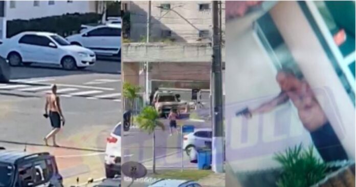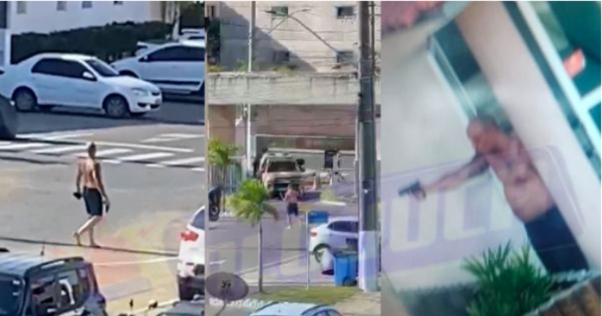 Nas imagens enviadas ao portal Alô Juca, é possível ver o homem descalço e sem camisa proferindo xingamentos e disparando uma arma de fogo. Informações não confirmadas sugerem que ele poderia ser policial.