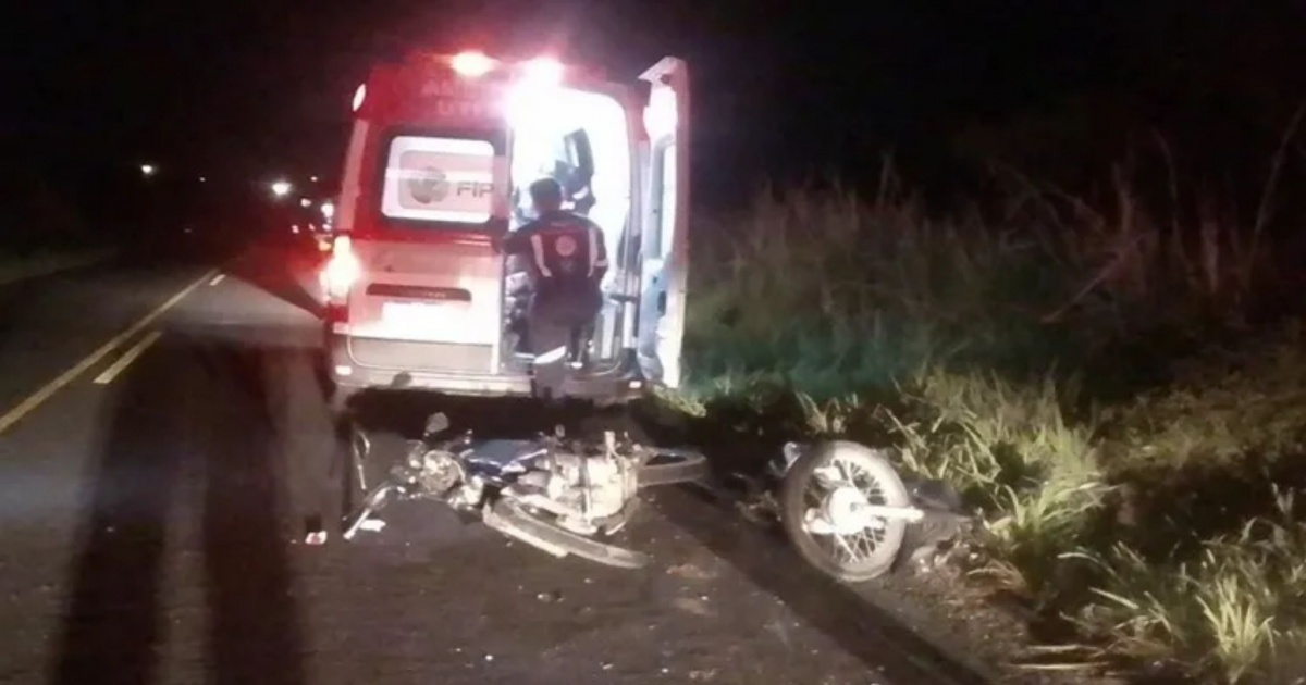 Uma colisão entre três motocicletas deixou pelo menos um motociclista gravemente ferido na noite de domingo (15), por volta das 19h25, próximo a Guanambi, no distrito de Mutãs, na BR-030. De acordo com informações do Achei Sudoeste, Wesley dos Santos Moreira, de 25 anos, estava rebocando outra moto em direção ao trevo de Mutãs quando foi atingido por trás por Railton Lima da Silva, que pilotava uma terceira motocicleta.
