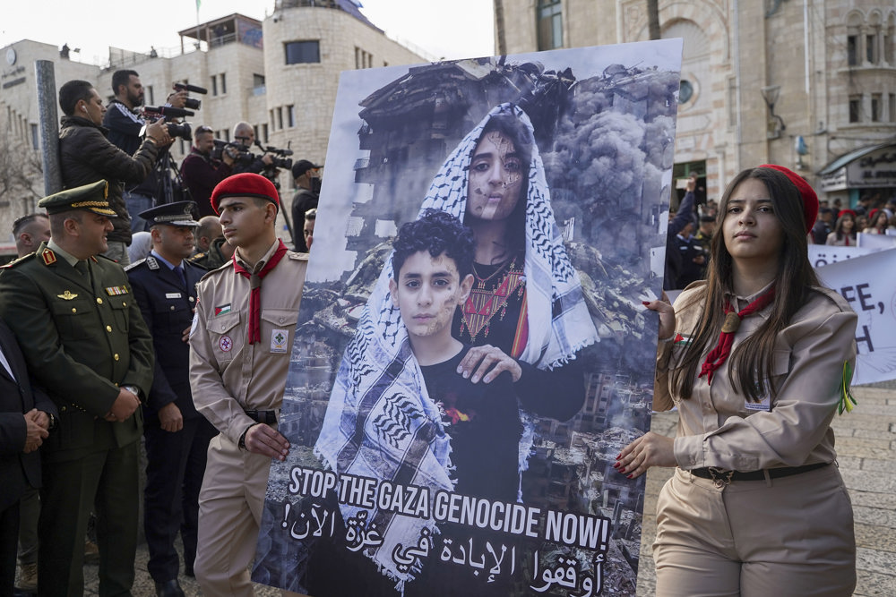 Na véspera de Natal, desfiles de escoteiros trouxeram mensagens como “Detenham o genocídio em Gaza”, enquanto o patriarca latino de Jerusalém, Pierbattista Pizzaballa, que visitou Gaza recentemente, pediu aos fiéis que não percam a esperança, apesar da devastação. Em Gaza, cristãos celebraram a Missa da Noite de Natal na igreja da Sagrada Família. “Este Natal tem cheiro de morte e destruição”, lamentou George Al Sayegh, palestino deslocado pelo conflito.
