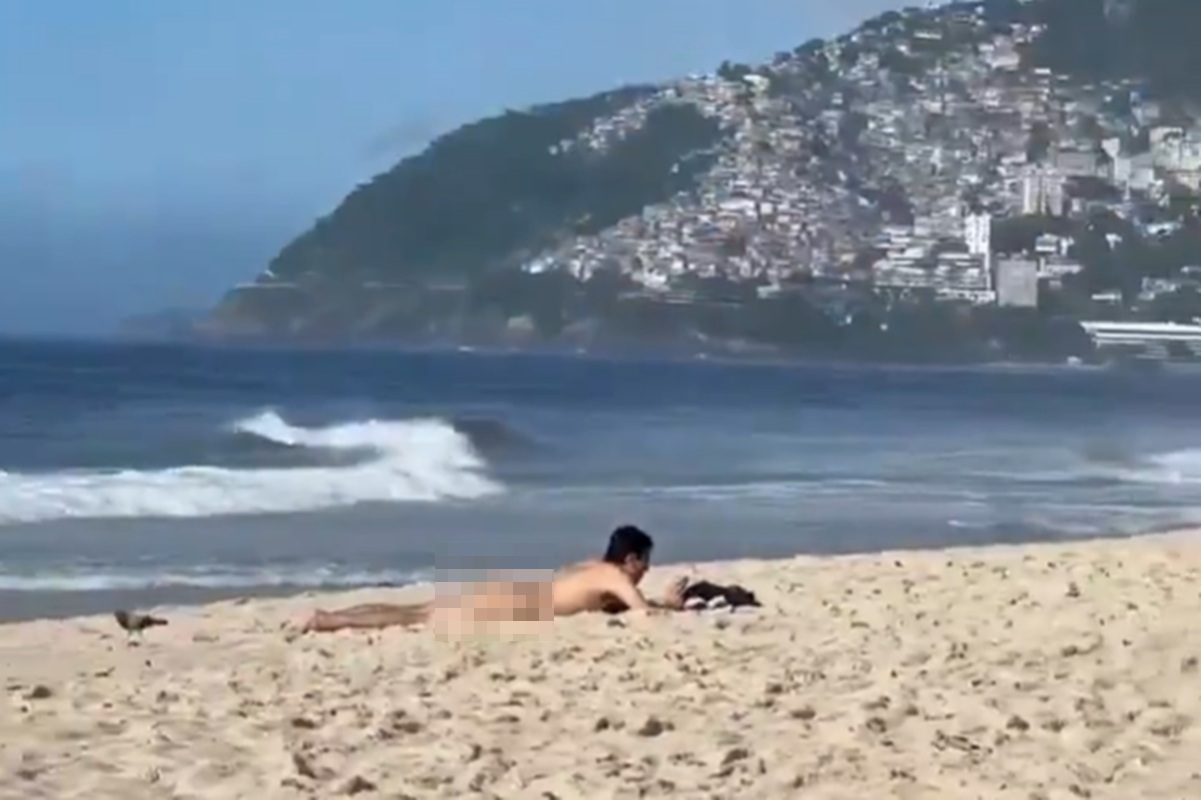 Um homem foi flagrado tomando sol pelado na Praia de Ipanema, na zona sul do Rio de Janeiro. Um vídeo que mostra a situação ocorrida na manhã desta quarta-feira (25/12) circula nas redes sociais (veja abaixo).